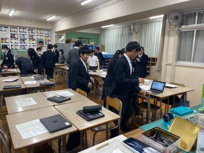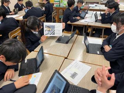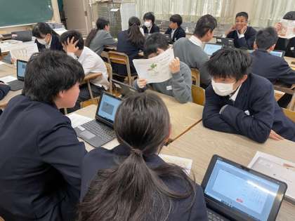 3学期最初の時間は冬休みの課題「なぜか気になる情景」の相互鑑賞です。なぜその場所を描いたのか、どのような工夫をしたのかを発表しました。
