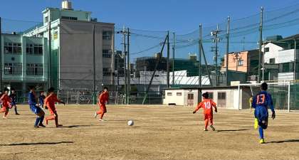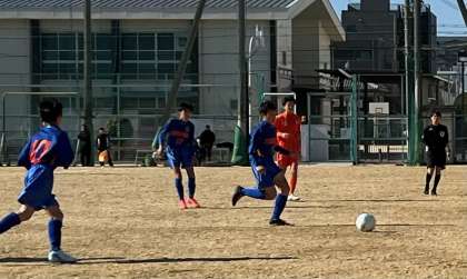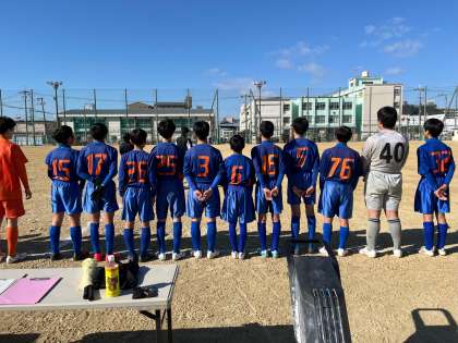 冬季4ブロック大会予選リーグで、新生野中学校と対戦しました。立ち上がりから自分達の目指しているサッカーをすることができ、早い時間帯に2点を先取しました。そこから、相手が引いてくる中でなかなか得点を重ねることができず、2-0で前半を折り返します。後半に入り、ポジションの立ち位置を変え、相手を誘い出すことで、ペナルティエリアへの仕掛けも増え、得点を奪うことができました。前半の課題を後半で攻略できたゲームになり、成長が見られました。これで、予選リーグが終わり1位で通過することができました。2月から決勝トーナメントに入ります。それまでにできる準備をしっかりしていきましょう。本日も応援ありがとうございました。