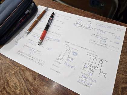 滑車の問題に取り組んでいます。応用編問題にも果敢に挑んでいます。