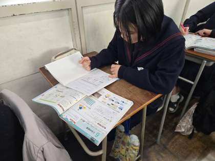 健康と環境について学習しています。いつもと違うメンバーてすが、いい雰囲気で学習しています。