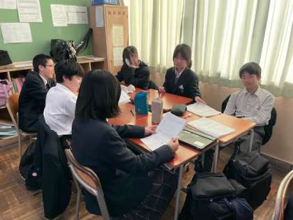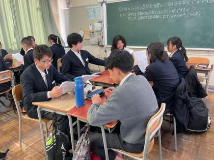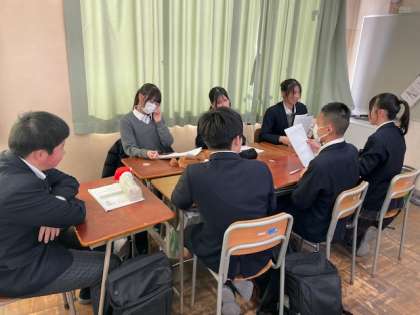 巨大地震が自宅で起こったときに危険な場所はないかを考えました。その場所でどんなことが起こるのか、それを防ぐためにどんな対策をすればよいかワークシートに書き、班で共有しました。