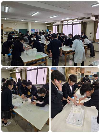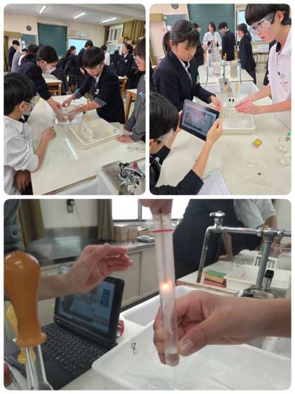 気体の発生とその性質を調べる実験をしました。水上置換方で集めた酸素と二酸化炭素の性質を調べました。