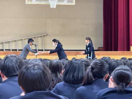 先週の校長だよりに記載されているアンケート結果は確認しましたか?ふり返りをしっかりしてみてください。本日の校長先生のお話は履き物をそろえる話でした。心を整え、行動が素晴らしいものになります。自分の行動や生活リズムをふり返り、良い行動を意識していきましょう。