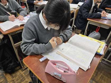 少年の日の思い出という教材を学習しています。積極的に手を上げる姿もみられます。