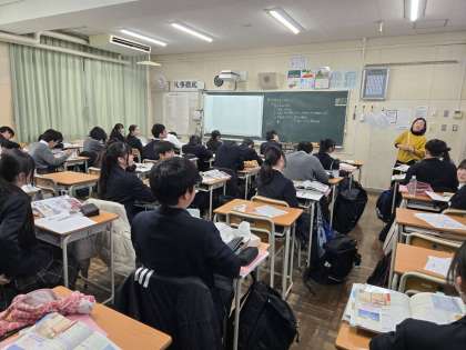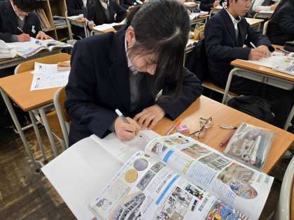 歴史は明治維新の地租改正について学習しています。言葉を覚えるだけではなく、背景や理由を考えることを大切にしています。