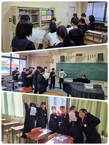 合唱の練習をしています。パートごとに分かれて、自分たちでしっかりと練習しています。