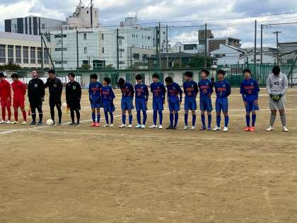 4ブロック大会の決勝トーナメントで、阪南中学校と対戦しました。初めてスタメン出場をする選手もいる中で、緊張でいつものようにプレーができない立ち上がりになりました。序盤から相手がロングボールを蹴ってくる中で、チャンスを作られる場面が何度かありました。前半の終盤には少しずつ落ち着きながらプレーができるようになり、徐々にゴールに迫りますが、得点を奪えず、0-0のまま前半を終えます。後半からはメンバーを少し入れ替え、対策をしますが、相手の圧力を受ける形でゴールに迫られます。なんとか粘り強く守備をし、0-0で後半を終え、PKになります。それぞれが決める中、GKのナイスセーブがあり、勝ち切ることができました。