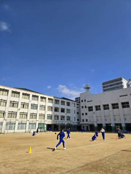 持久走に取り組んでいます。今日は1500m走のタイムを計りました。受験勉強で少し体力が落ちている生徒が多いですが、それでもみなさん一生懸命走っています。