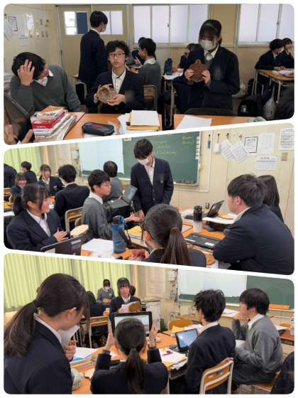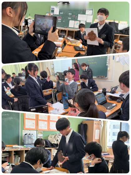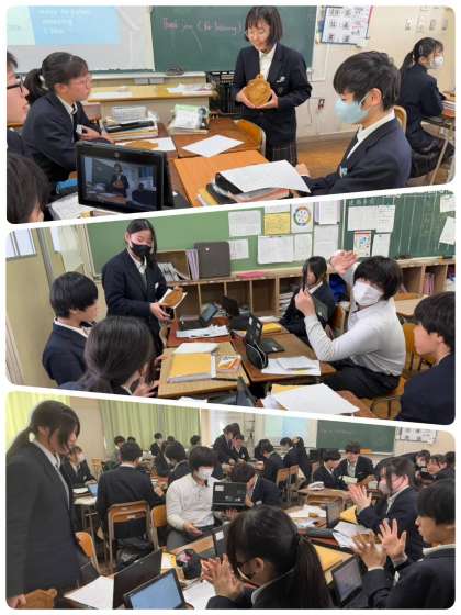 2年生で、美術と英語の教科横断学習を行いました。美術の時間に制作した鍋敷きを英語でプレゼンテーションしています。とても興味深い授業になりました。