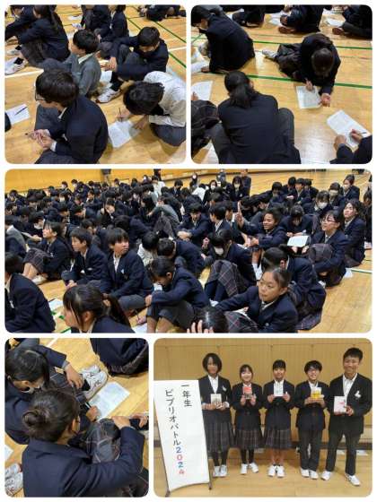 金曜日、1年生ビブリオバトル学年チャンプ本決定戦が行われました。班代表戦、クラス代表決定戦を勝ち抜いた5冊の戦いとなりました。さすがは各クラスのチャンプ本だけあってみなさん素晴らしいプレゼンテーションで、また質疑応答もさまざまな意見が出ました。果たして学年チャンプ本はどれになるのか。結果発表は次回の学年集会の予定です。