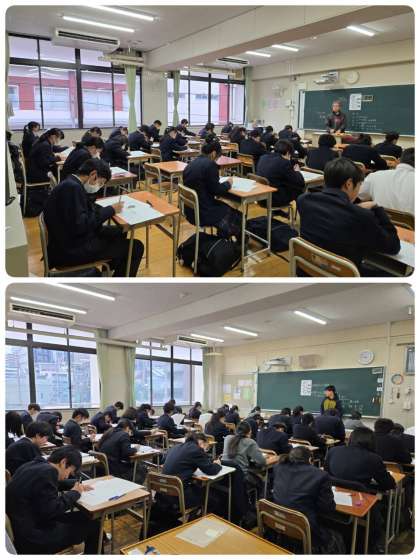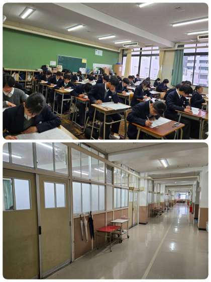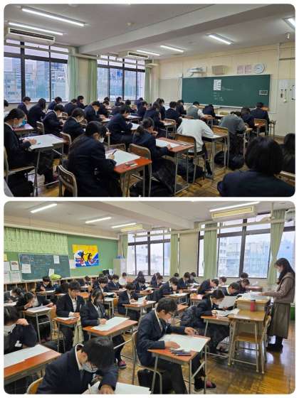 1年生は国語、社会、技術・家庭のテストを受けました。明日もがんばりましょう。