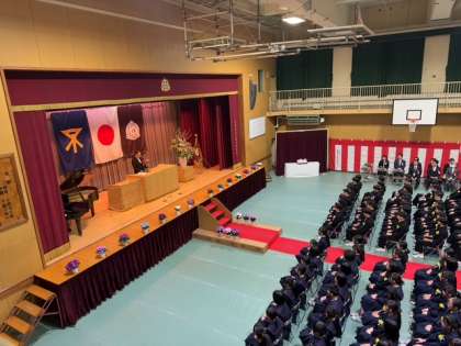 学校長の式辞に続き、教頭よりご来賓の皆様の紹介があり、その後、PTA 会長より祝辞をいただきました。
