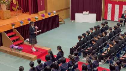 在校生からの送辞と卒業生の答辞が述べられ、感動の瞬間となりました。会場には、思わず涙ぐむ姿も見られました。