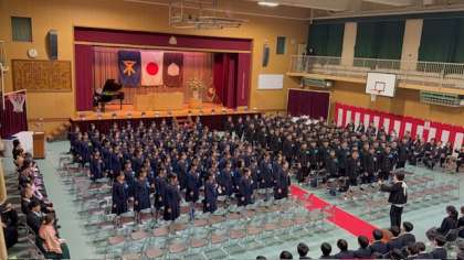 卒業生による別れの歌の合唱が披露されました。さらにサプライズもあり、涙を浮かべる先生方の姿も見られました。美しい歌声が会場に響き渡り、感動に包まれました。