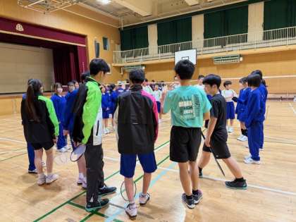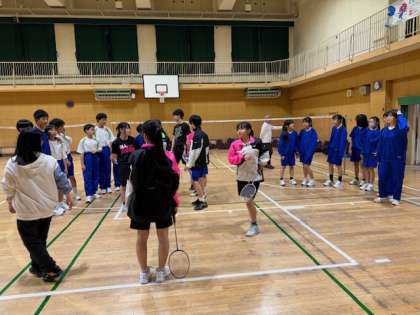 たくさんの生徒が参加し、ラケットの持ち方などを教わりながら楽しく活動しました。体を動かす楽しさや、部活動の雰囲気を感じる良い機会となりました。