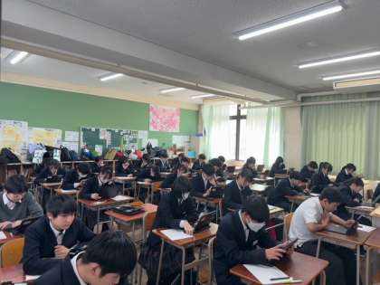 理科のテストの様子です。初めて学習端末を使用した全国学力・学習状況調査でした。みんな真剣に取り組んでいました。