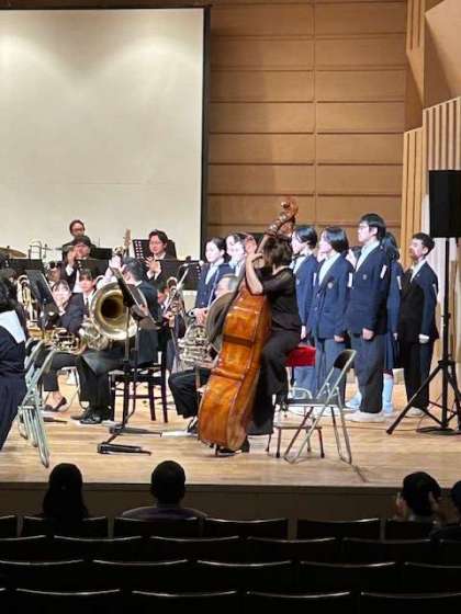 舞台上では、吹奏楽団の演奏と共に、『ふるさと』を熱唱してくれました。