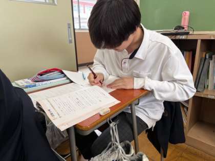 数学の授業では、因数分解に取り組んでいます。仕組みを理解し、パターンをつかむことで、だんだんと問題を解くのが楽しくなってきています。