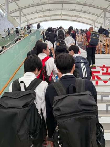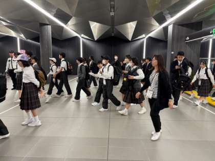 新しくできた駅はとても綺麗です。東ゲートへ歩き出しています。