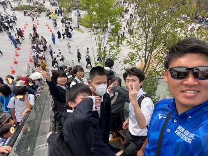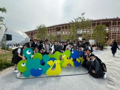 万博会場では、子どもたちが思い思いの楽しみ方で充実した時間を過ごしています。気になるパビリオンをじっくり見たり、写真を撮ったりと、どこも笑顔であふれています。夕吉に似たくまさんを発見しました。
