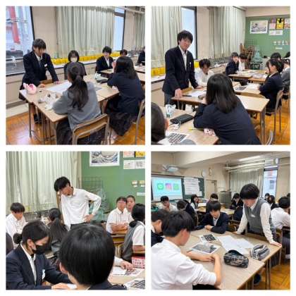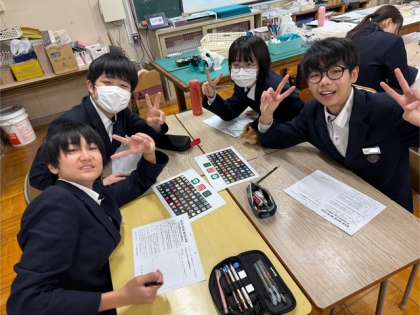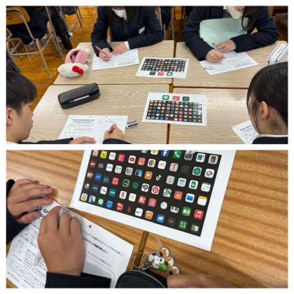 この時間は、はじめに絵画とデザインについての違いを理解しました。3年生1学期の課題はアプリのアイコンのデザインです。実際にあるアプリのアイコンを鑑賞し、どのような特徴があるのかを班で考えました。最後にクラス全体で発表しました。