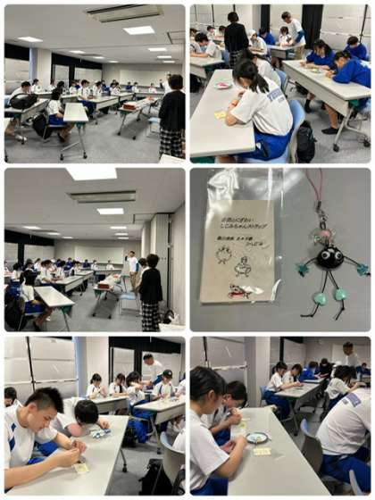 今日の福井県若狭町の最高気温は32度、非常に暑いので、しじみ漁に行く前にしじみを使ってのストラップを作っています。