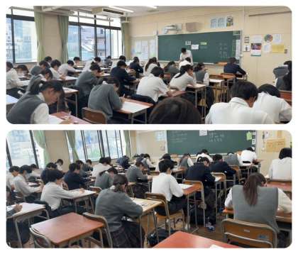 これまでの学習の成果を試す良い機会となり、生徒たちは緊張感をもちながらも真剣な表情で取り組んでいました。