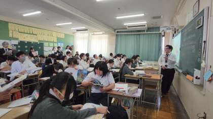 令和の米騒動や先日の修学旅行との関連などにも触れ、生徒の興味関心を引き出す工夫をしています。