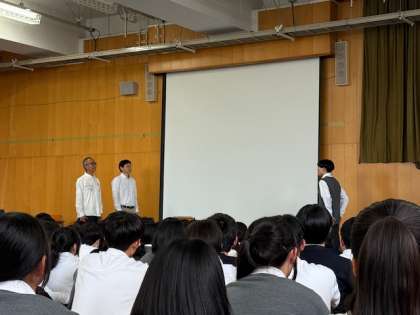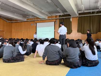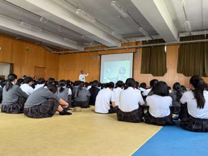 3年生は6時間目に万博の出前授業を受けました。ゲストの方々に来ていただき、これからの社会や未来に関わるさまざまなテーマについて、分かりやすくお話しいただきました。生徒たちは「そんなことがあるんだ!」と目を輝かせながら話を聞き、さまざまな興味がわく内容に引き込まれている様子でした。