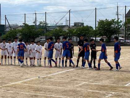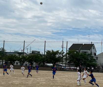 大阪市サッカー地区大会で、住之江(拠)中学校と対戦しました。前半は緊張からか思うようにボールをつなげず相手ペースのゲームでしたが、前半終盤に差し掛かったときにチャンスから先制点をあげ、1-0で折り返しました。後半からは少しずつ落ち着いて、プレーできる時間が増え、追加点をあげ2-0で勝ちました。地区大会ベスト8まで勝ち進み、上位7チームが進出できる大阪府大会まであと一勝になりました。次も勝てるようしっかりと準備しましょう。本日も応援ありがとうございました。