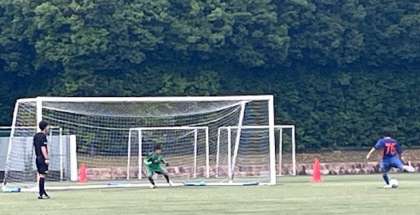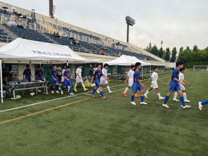 大阪市サッカー春季総体で、茨田北中学校と対戦しました。立ち上がりから、気持ちの入ったプレーが何度もありました。開始10分、相手背後に抜け出して先制点をとり、前半を1-0で折り返しました。後半開始すぐ、相手にミドルシュートを決められて1-1になり、相手が勢いに乗る中、我慢の時間が続きましたが、そのまま前後半が終わりました。PK戦では、GKの活躍もあり勝利することができました。次は準決勝になります。勝利のために来週もトレーニングに励みましょう。本日もたくさんの保護者の方の応援ありがとうございました。