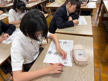 文字を美しくデザインするレタリングの単元です。様々なフォントがある中で、明朝体とゴシック体を練習します。書き方の動画を見た後に、練習しました。