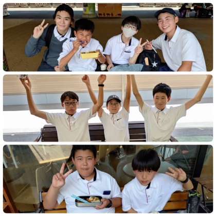 天王寺動物園での昼食の様子です。おいしくお弁当をいただいてます。