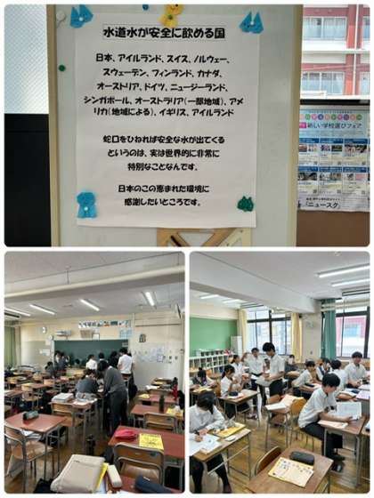 先日の学年集会の折に、水道水の水が普通に飲めることは、ありがたいことですよと言う話を先生がしてくださいました。