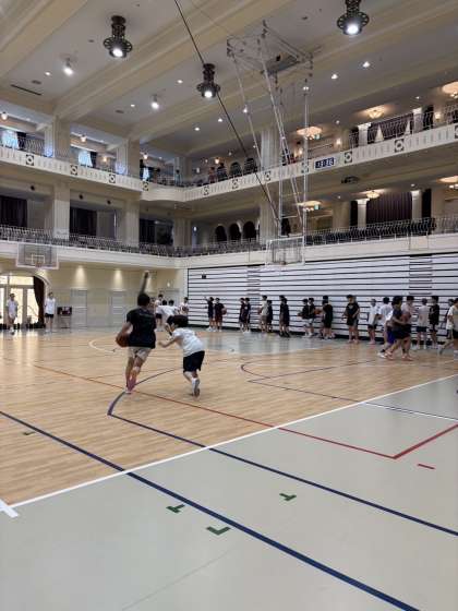 男子バスケットボール部です。今日は興國高校で高校生と合同練習をさせてもらいました。高校生に教えてもらいながら、基礎的な練習を学びました。高校生のフィジカルの強さ、早いパスに圧倒されていました。良い学びになりました。来週の日曜日は選手権大会、今日学んだことを普段の練習から意識して、試合に向けて練習していきます!