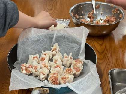 家庭科の授業では、調理実習としてシューマイ作りに挑戦しました。
