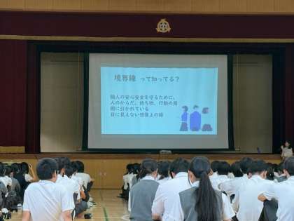 本日、保健室の先生から「いのち」についてのお話がありました。テーマは「こころの境界線」や「人との関わり方」について。とても大切なお話でした。人にはそれぞれ心の距離感や感じ方の違い(心の境界線)があります。そのため、自分の気持ちを大切にすることはもちろん、相手の気持ちにも配慮することが大切だと学びました。また、たとえ恋人や親しい関係であっても、相手をコントロールしたり、支配することはできないということも、改めて心に留めておきたい大切なポイントでした。自分も相手も尊重し合える関係を築けるよう、これからの人間関係にも活かしていきましょう。