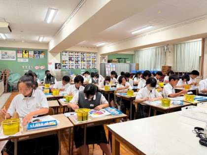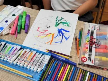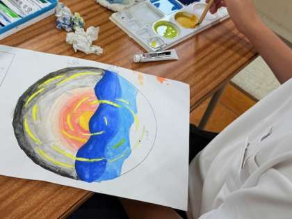 様々な画材の特徴をいかし、意図に応じて表現方法を工夫しています。あと少しで完成しそうです。
