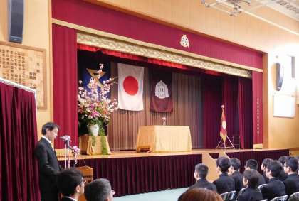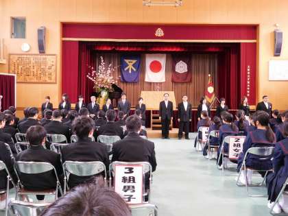 学校長式辞に引き続き、PTA会長祝辞、生徒会長からの歓迎の言葉、新入生喜びの言葉が述べられました。新入生は期待に胸を膨らませ、夕陽丘中学校での生活をスタートさせました。