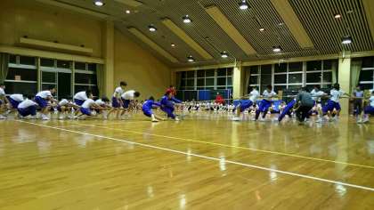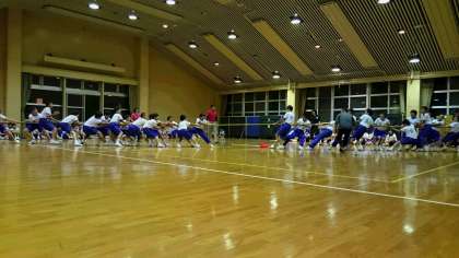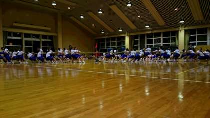 夜の取り組みは、クラス対抗綱引き大会です。どのクラスも気合い十分です。優勝するのは何組でしょうか。