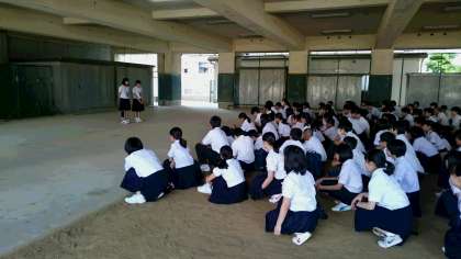 ピロティで出発式を行った後、バスで奈良へ向かいました。