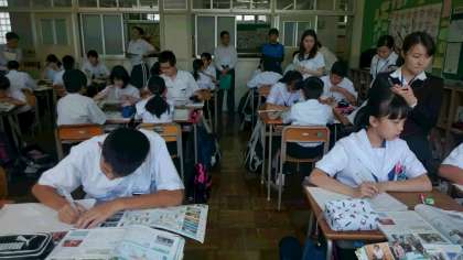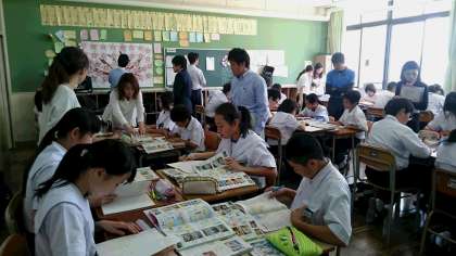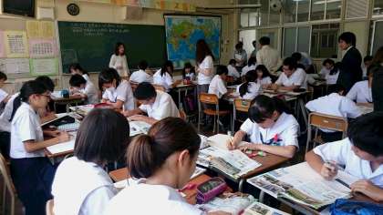 1年生の社会科で研究授業を行いました。協働学習という学習法をテーマに他の教科の先生や実習生も参観し、研修しました。