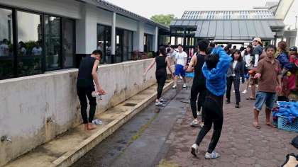 ベースへ戻ってきて、ウェットスーツから更衣します。あー、疲れたと言う声が聞こえてきます。