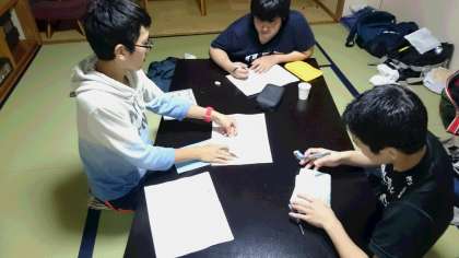 盛り上がったレクレーション大会も終了し、1日の感想を書いて、就寝準備です。