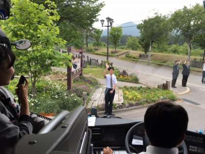 お世話になった黒部観光ホテルで退館式を終え、それぞれのバスに分かれて選択別体験に向かいます。