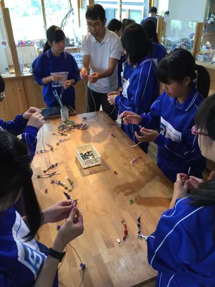 とんぼ玉を使って、アクセサリーを作っています。お気に入りのアクセサリーになるでしょうか?
