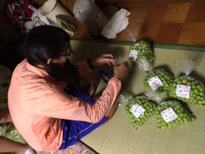 たけのこやいんげん、うめのグラムを測ったり、値札を付けたり出荷に直接携わるお手伝いをしました。