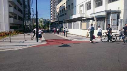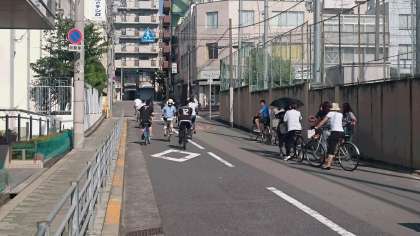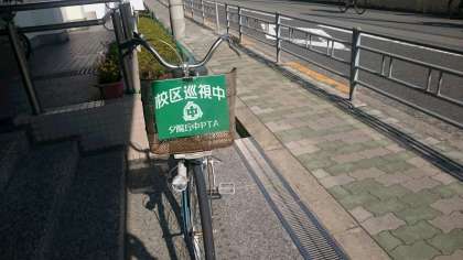 朝から強い日差しで気温が上がる中、たくさんの地域校外委員の方に参加していただきました。自転車で校区内を回り、生徒の安全な登校を見守りました。