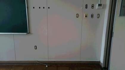 夏休みの教室では、管理作業員さんが壁のペンキ塗りをしています。きれいに使っていてもくすんでくるので、生徒のいない夏休み中にきれいに塗り直してくれています。