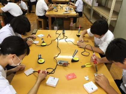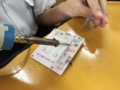 はんだごてを使ってはんだを溶かし、部品を取り付けていきます。